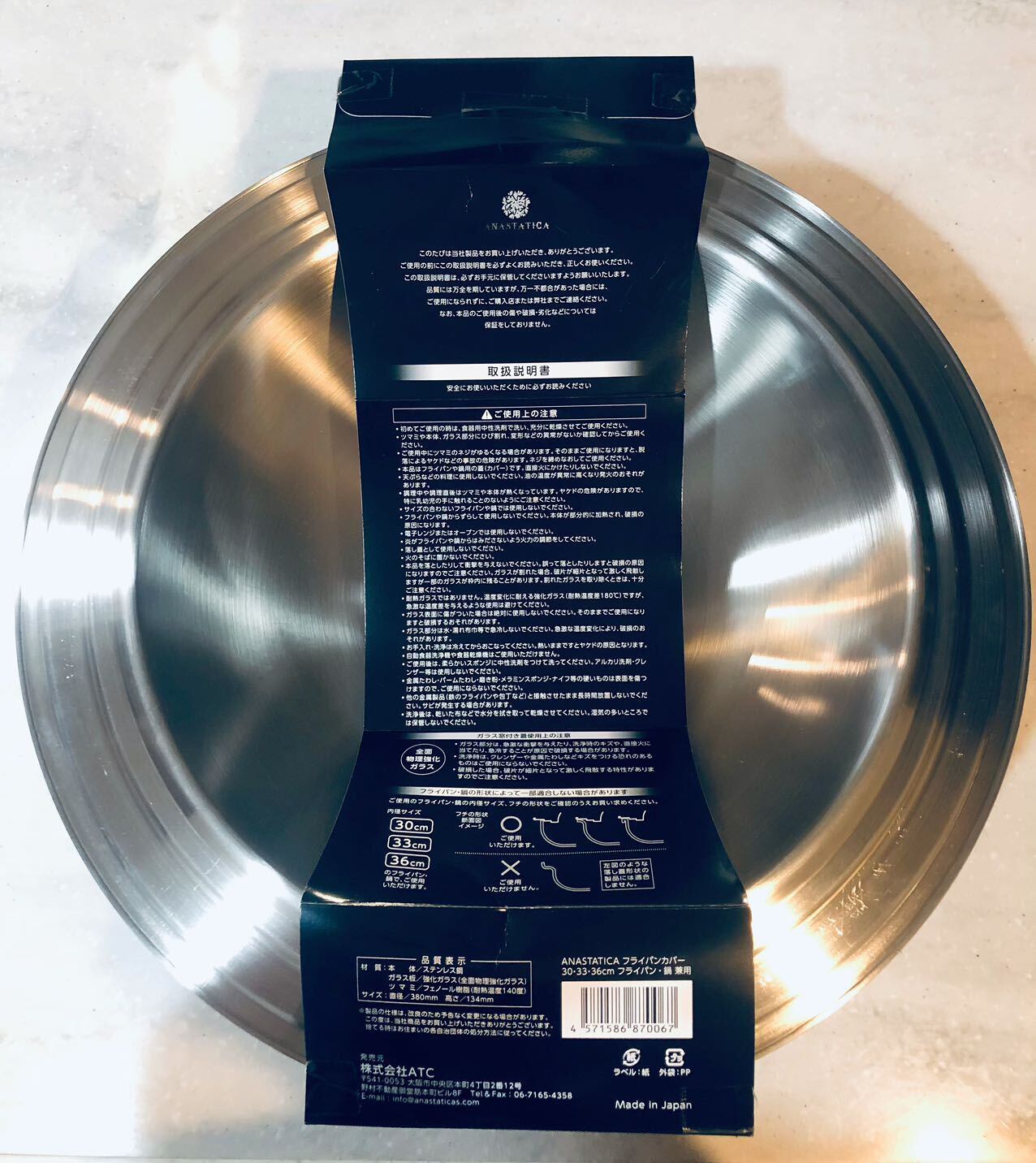 アナスタティカANASTATICA ANASTATICA 打ち出し鉄鍋フタ フライパン・鍋カバー ガラス窓付き ステンレス製フライパンカバー 30・33・36㎝兼用 日本製